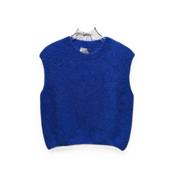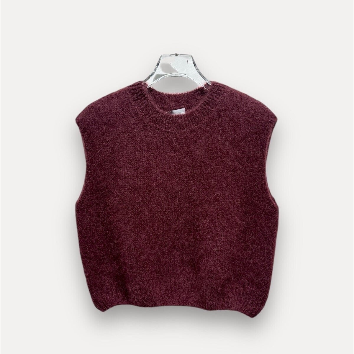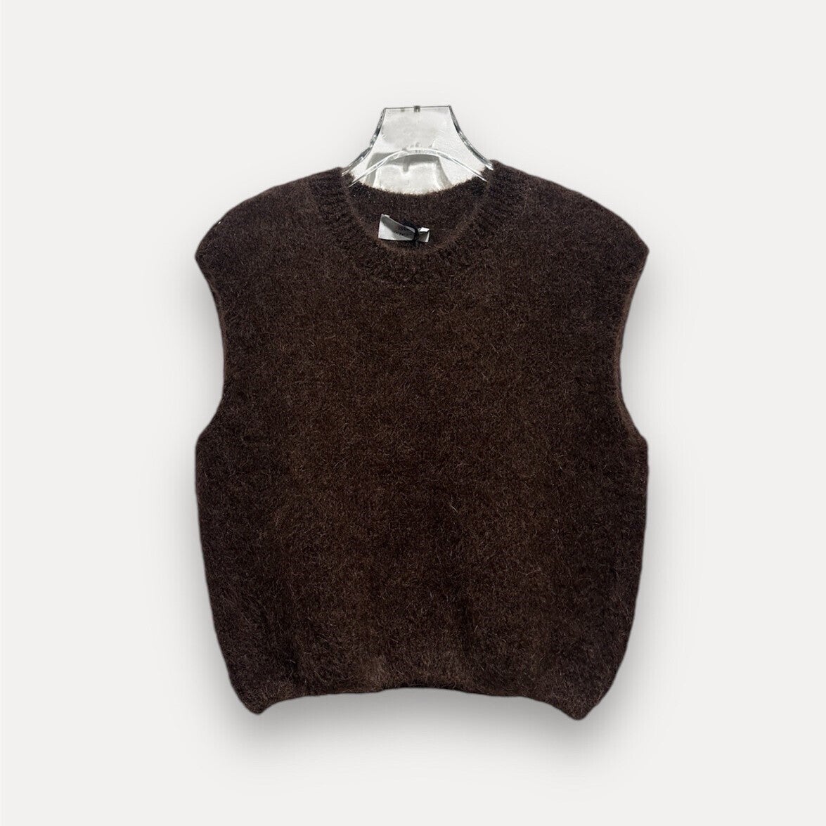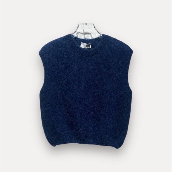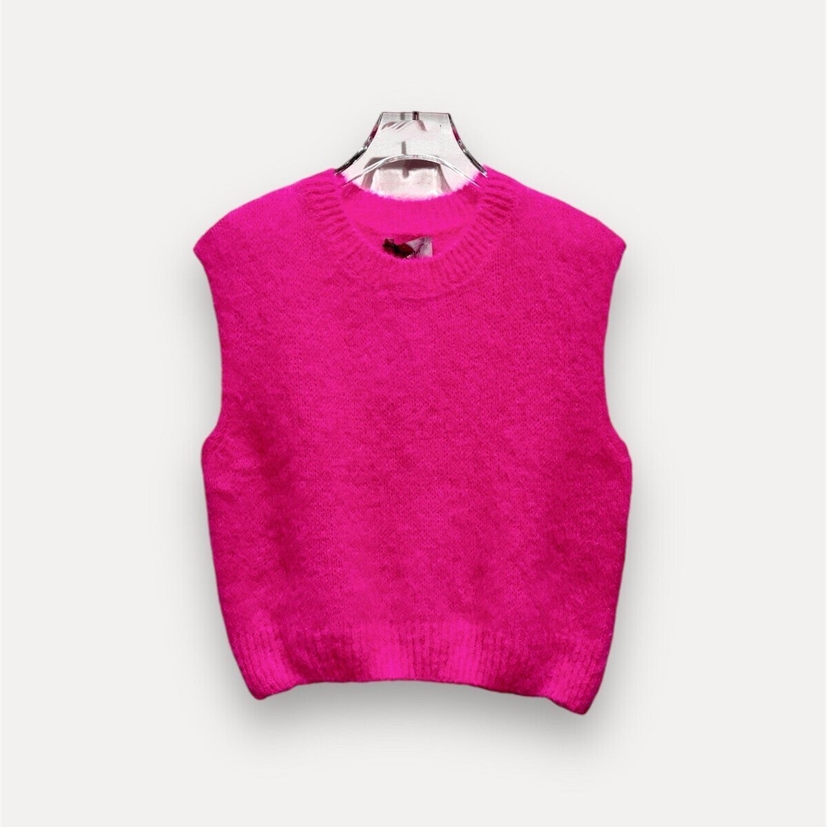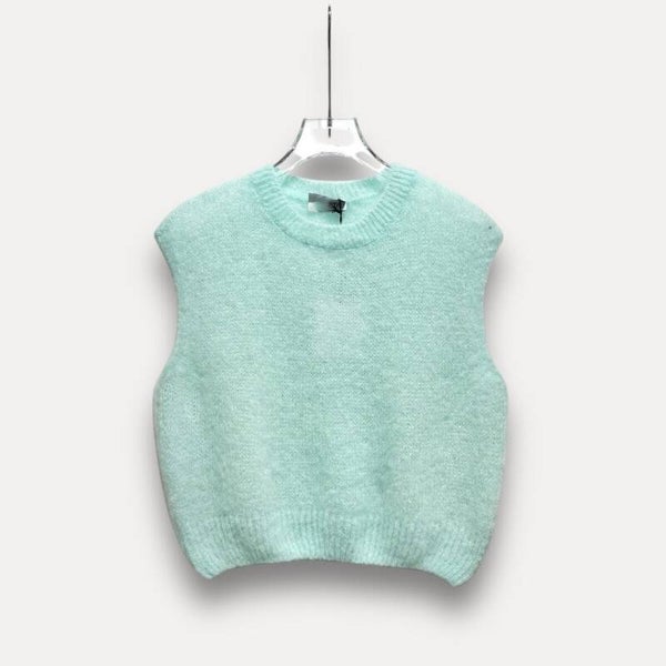 - Mouwloze mohair trui met ronde hals. Zacht, licht, comfortabel en combineer dit met een blouse of shirt voor een trendy laagjes look.