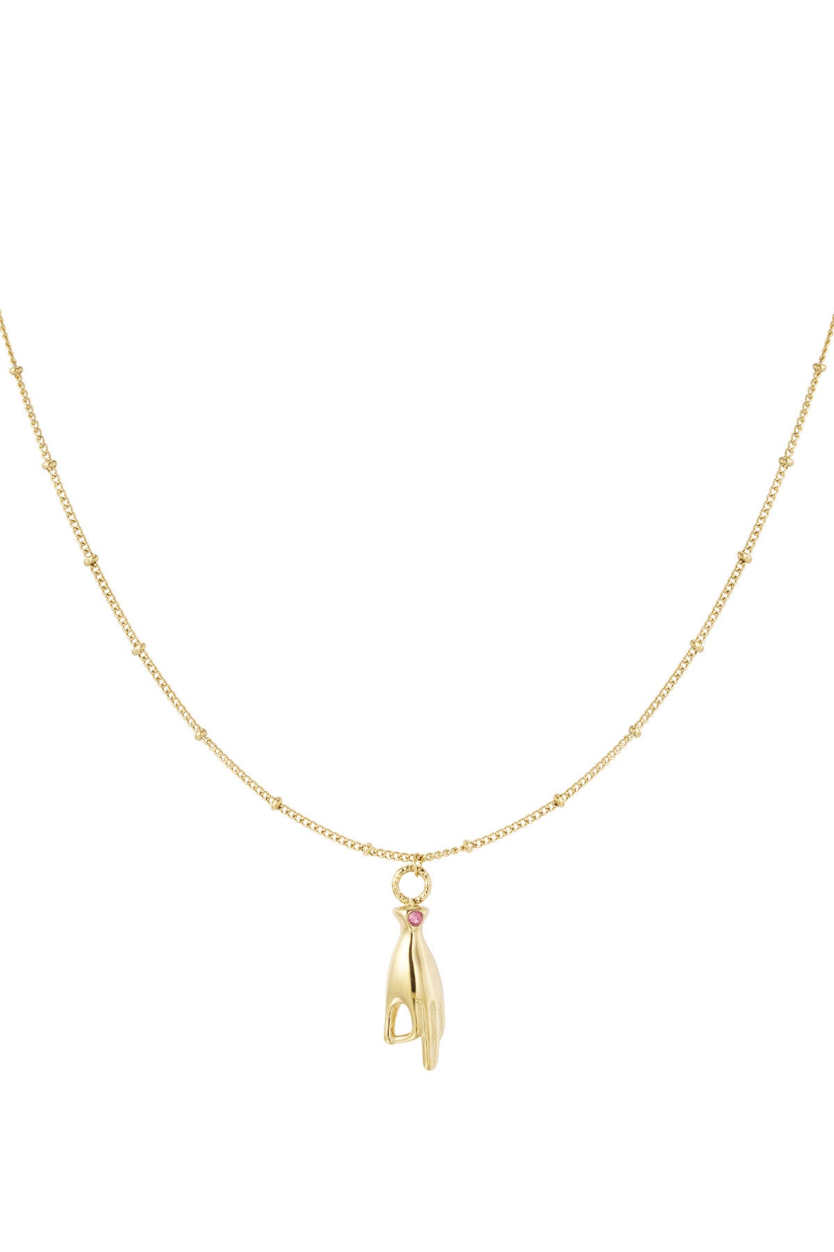 Ketting hand met roze steentje - Goud