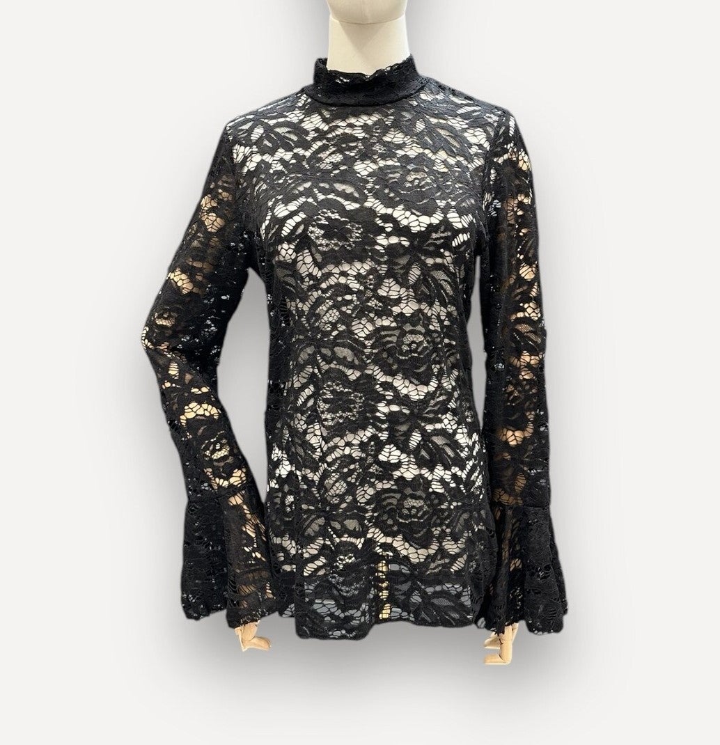Voeg een vleugje elegantie toe met deze lace top met flared mouwen. Delicaat kant en speelse mouwen maken hem perfect voor zowel feestelijke gelegenheden als casual chic outfits. Combineer met jeans, rokken of elegante broeken voor een stijlvolle look.