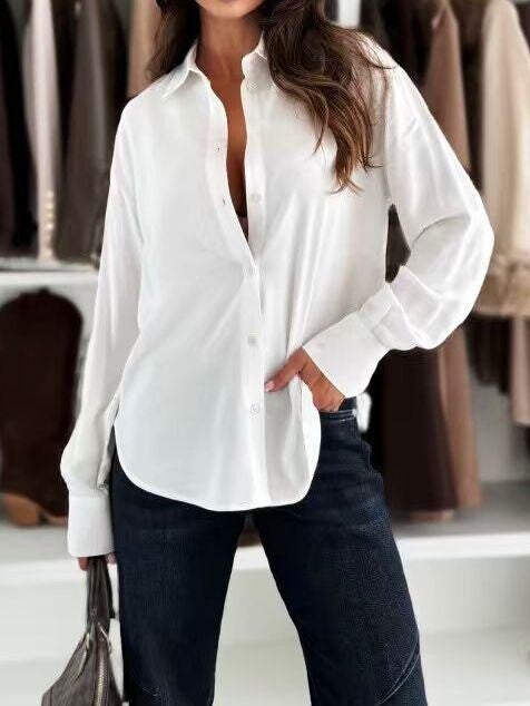 Tijdloze witte blouse met basic pasvorm en elegante knoopsluiting. Licht en comfortabel, perfect te combineren met jeans of geklede broeken voor een stijlvolle dagelijkse en avondlook.